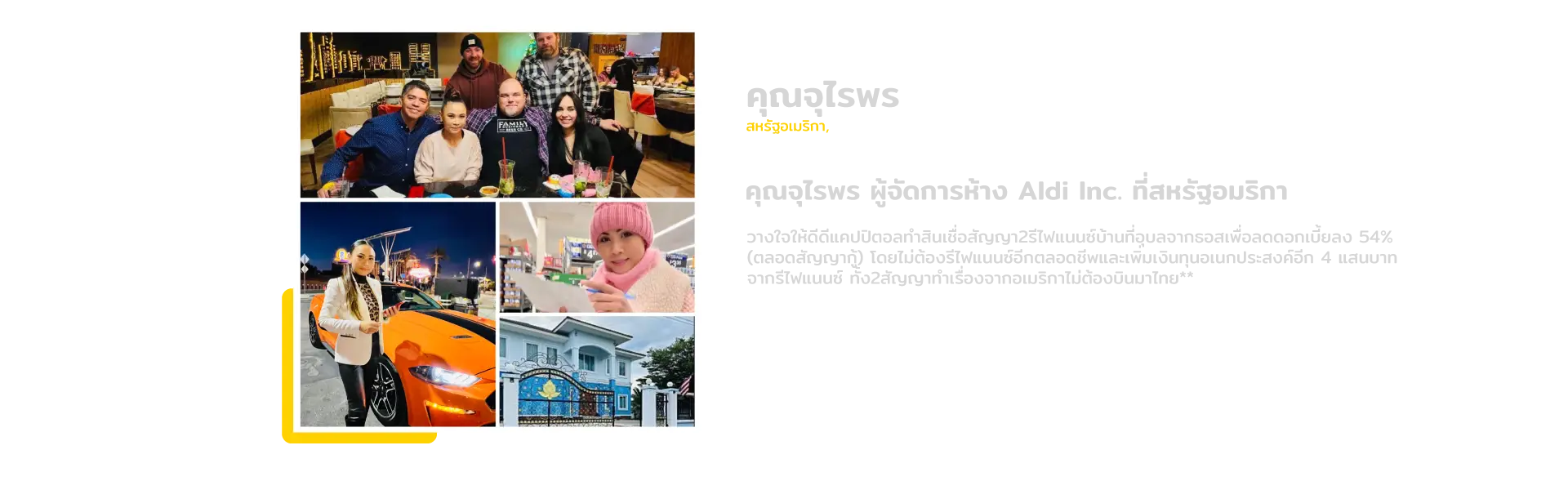 ด้วยประสบการณ์กว่า 20 ปี มั่นใจกับทีมงานมืออาชีพและระบบเครดิตสกอร์บูโรที่ไทยของเรา เราให้คำปรึกษา 2ภาษา เข้าใจง่าย เป็นกันเอง พร้อมช่วยเหลืออย่างใกล้ชิด ในการเตรียมเอกสารให้ถูกต้อง ครบถ้วน และช่วยอำนวยความสะดวกในการยื่นขอสินเชื่อ ง่าย สะดวก รวดเร็ว การันตีผลอนุมัติด้วยการ Preapprove ก่อนยื่นใบสมัคร ประหยัดเวลาและค่าใช้จ่าย